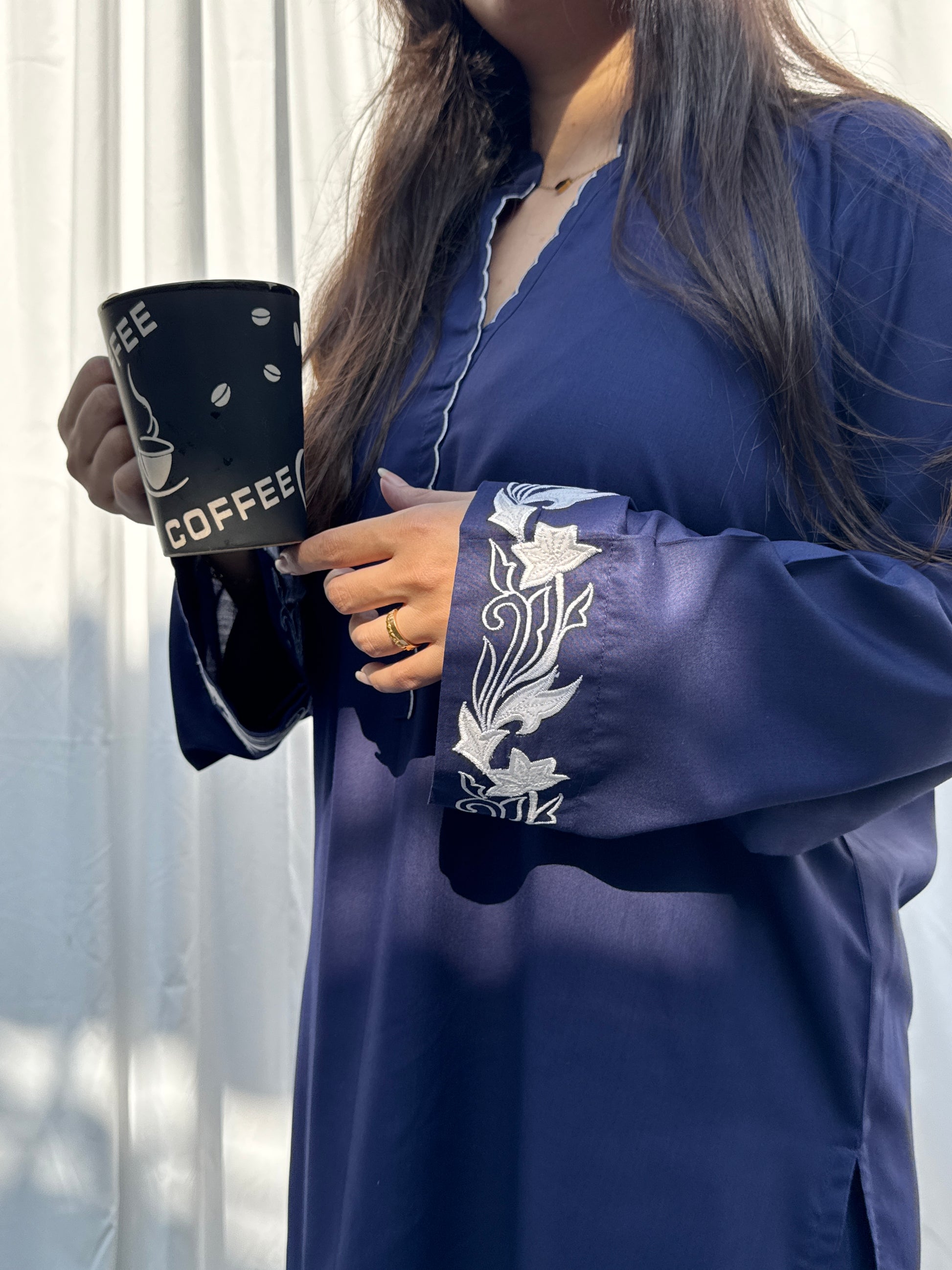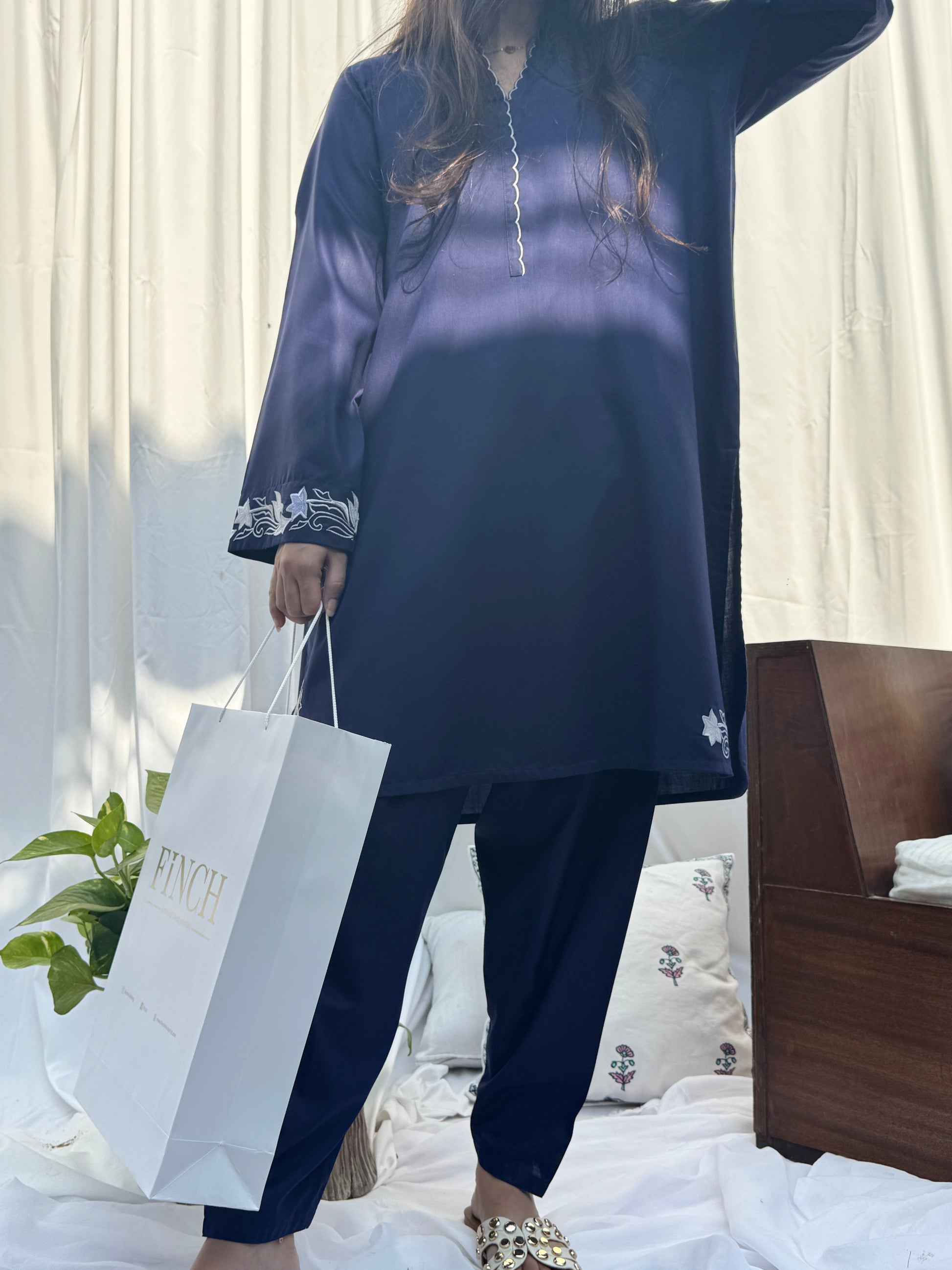 Elevate your fall wardrobe with the Marine Set, a sophisticated aubergine wash’n’wear two-piece shalwar kurta. Featuring delicate embroidery on the sleeves and daaman, complemented by refined scallop detailing along the neckline, this set combines comfort with elegant craftsmanship for effortless seasonal style.