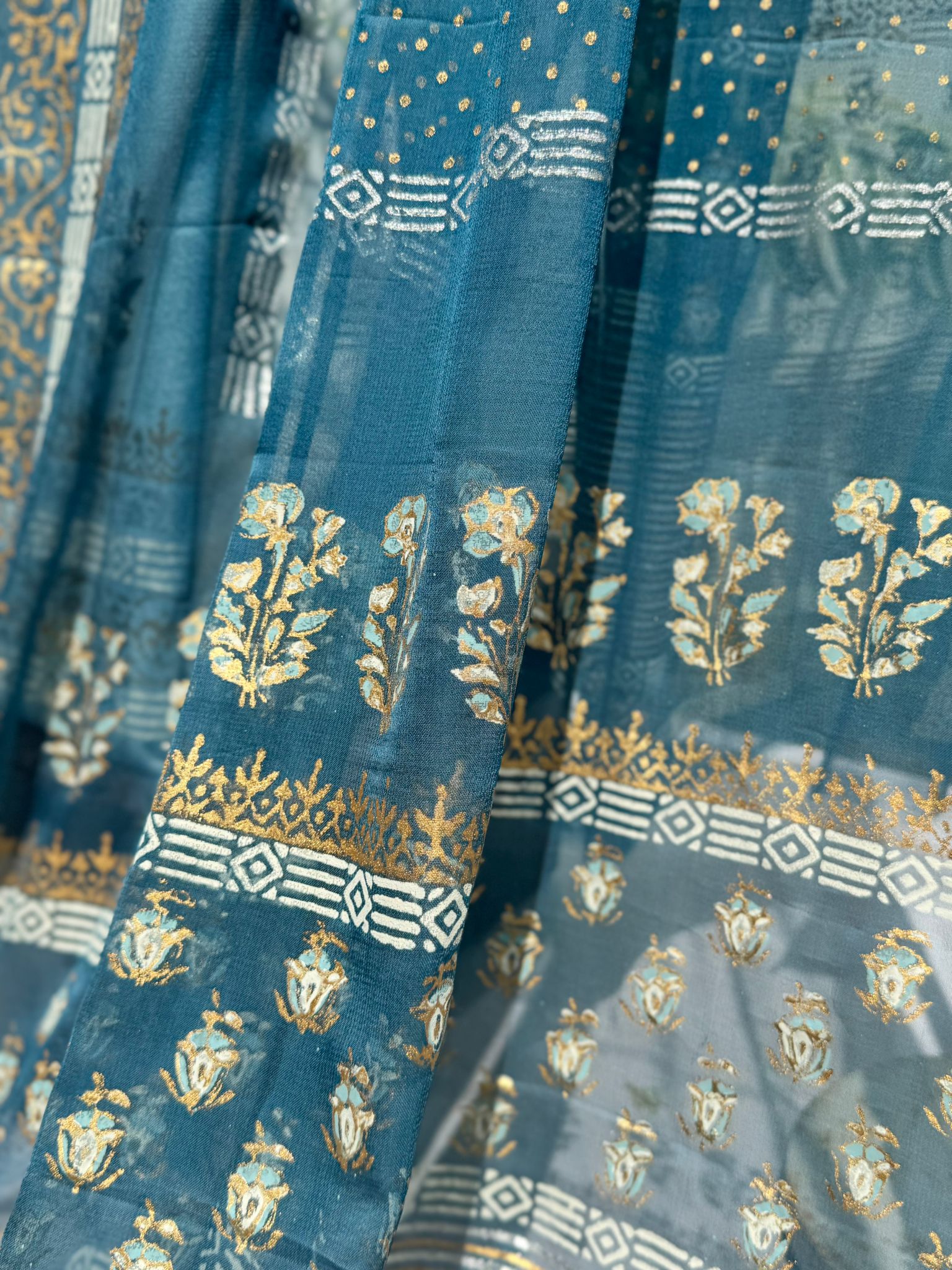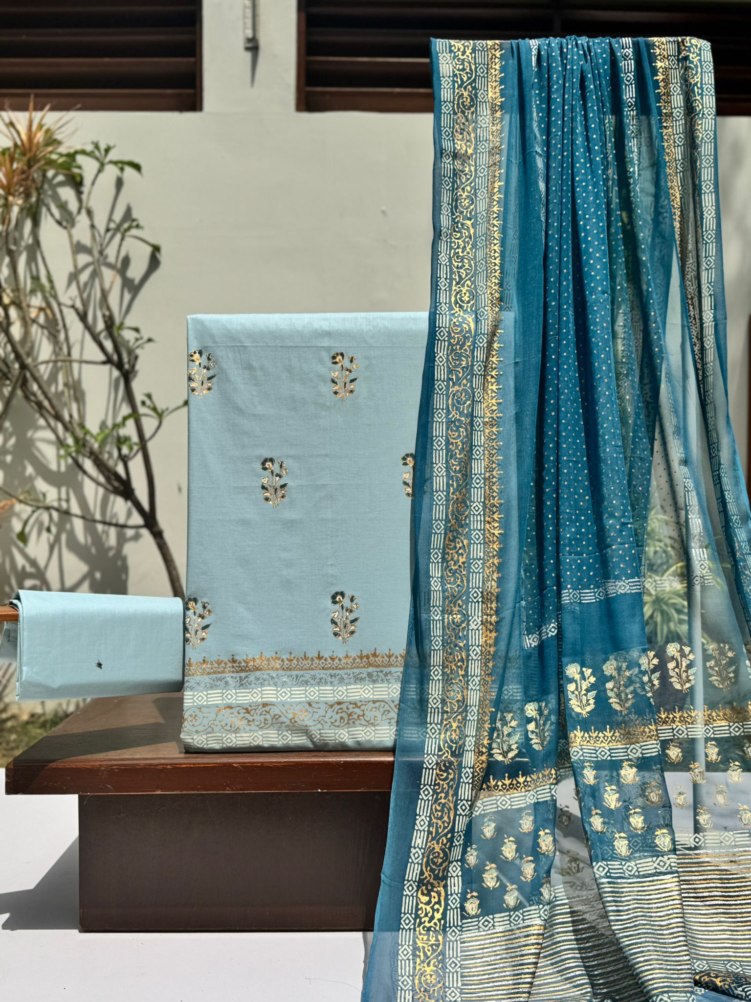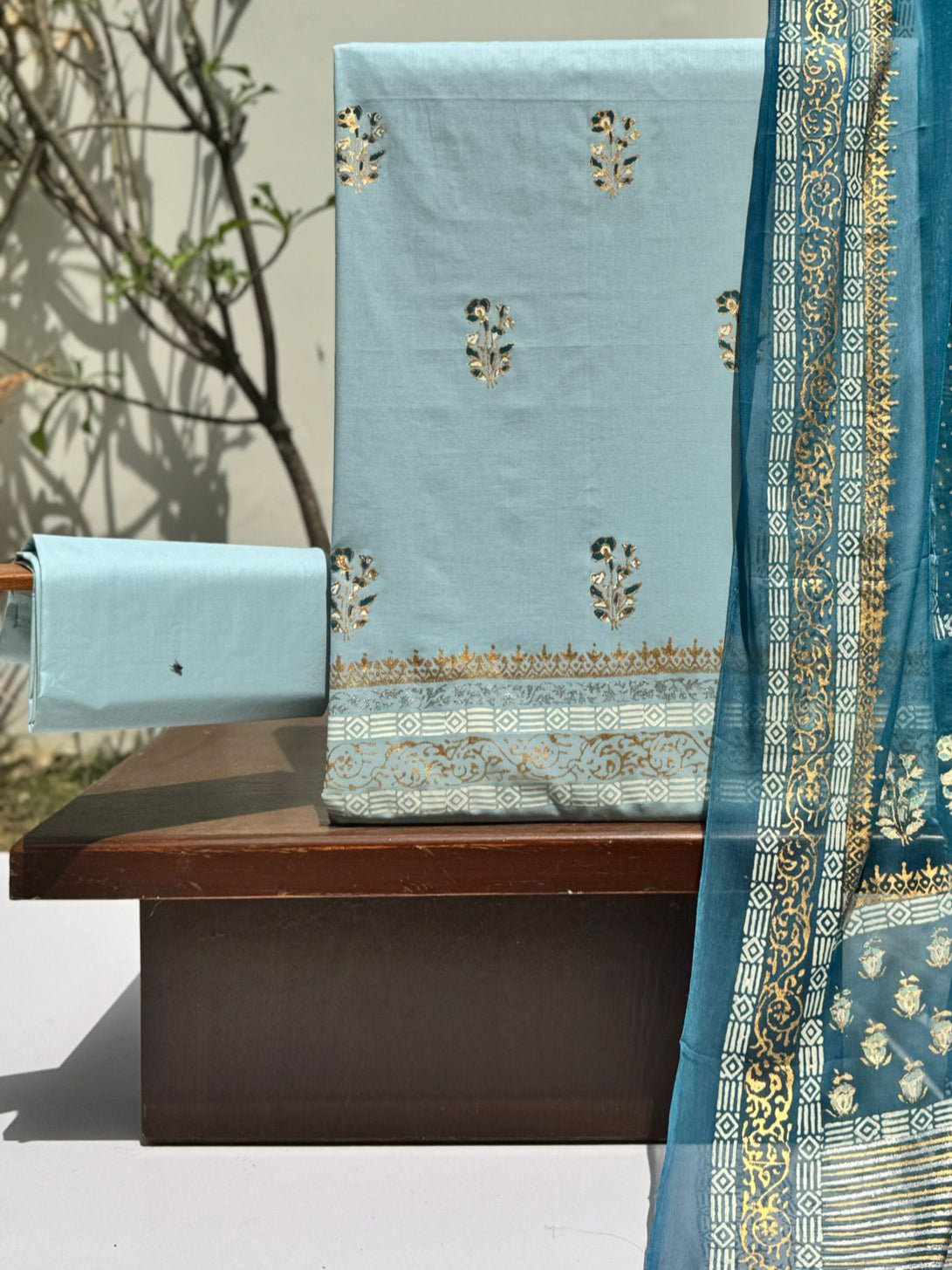 Elevate your wardrobe with the CAPRI unstitched 3-piece suit, crafted from premium cotton for ultimate comfort. This set includes a 3.5-yard cotton block print shirt, paired with 2.5 yards of cotton fabric for pants, and a 2.75-yard chiffon block printed dupatta, combining softness with refined elegance. Perfect for those who appreciate sophisticated style and breathable fabrics, this ensemble offers versatile customization and timeless appeal.