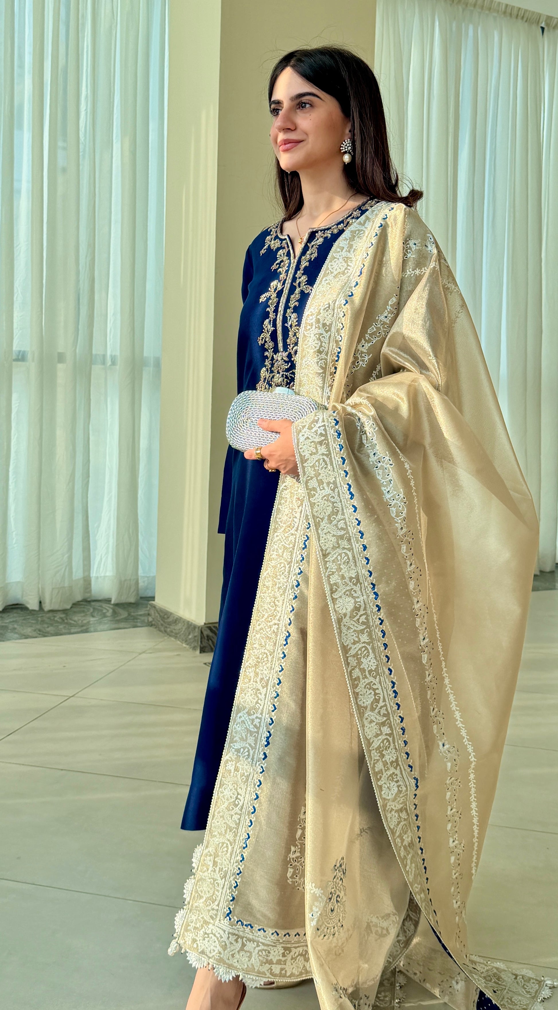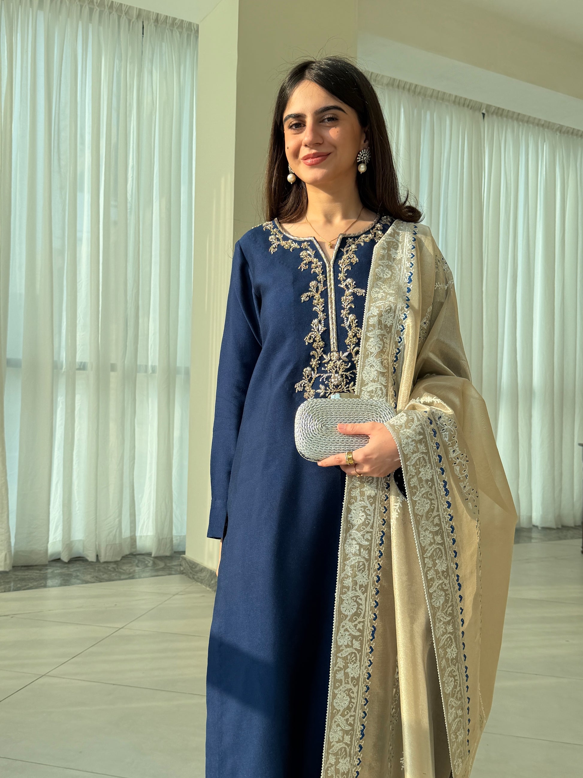 Elevate your collection with this three-piece ensemble that celebrates textural contrast and artisanal beauty. The khaadi silk shirt showcases refined neckline embellishment, while the sumptuous lama tissue dupatta provides an elegant counterpoint with its inherent luminosity. The block-printed dupatta design introduces traditional artistry and visual interest throughout the set. Pre-stitched for effortless sophistication, this collection speaks to those who understand that true elegance emerges from thoughtful fabric selection and meticulous attention to detail.