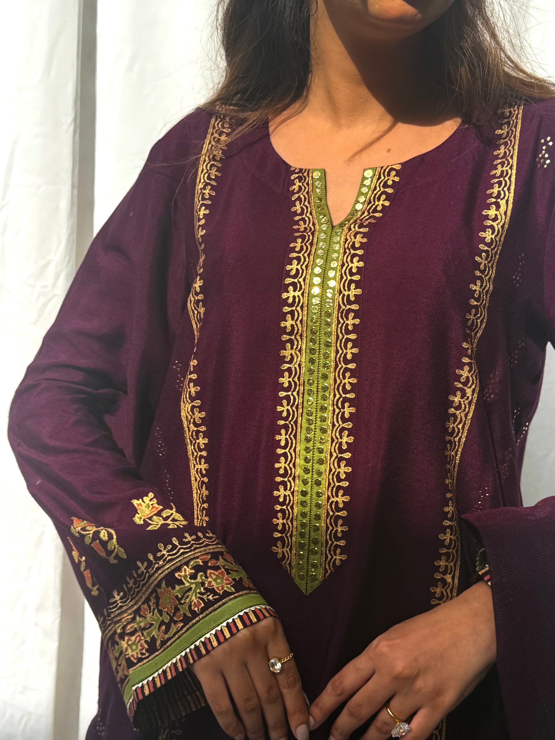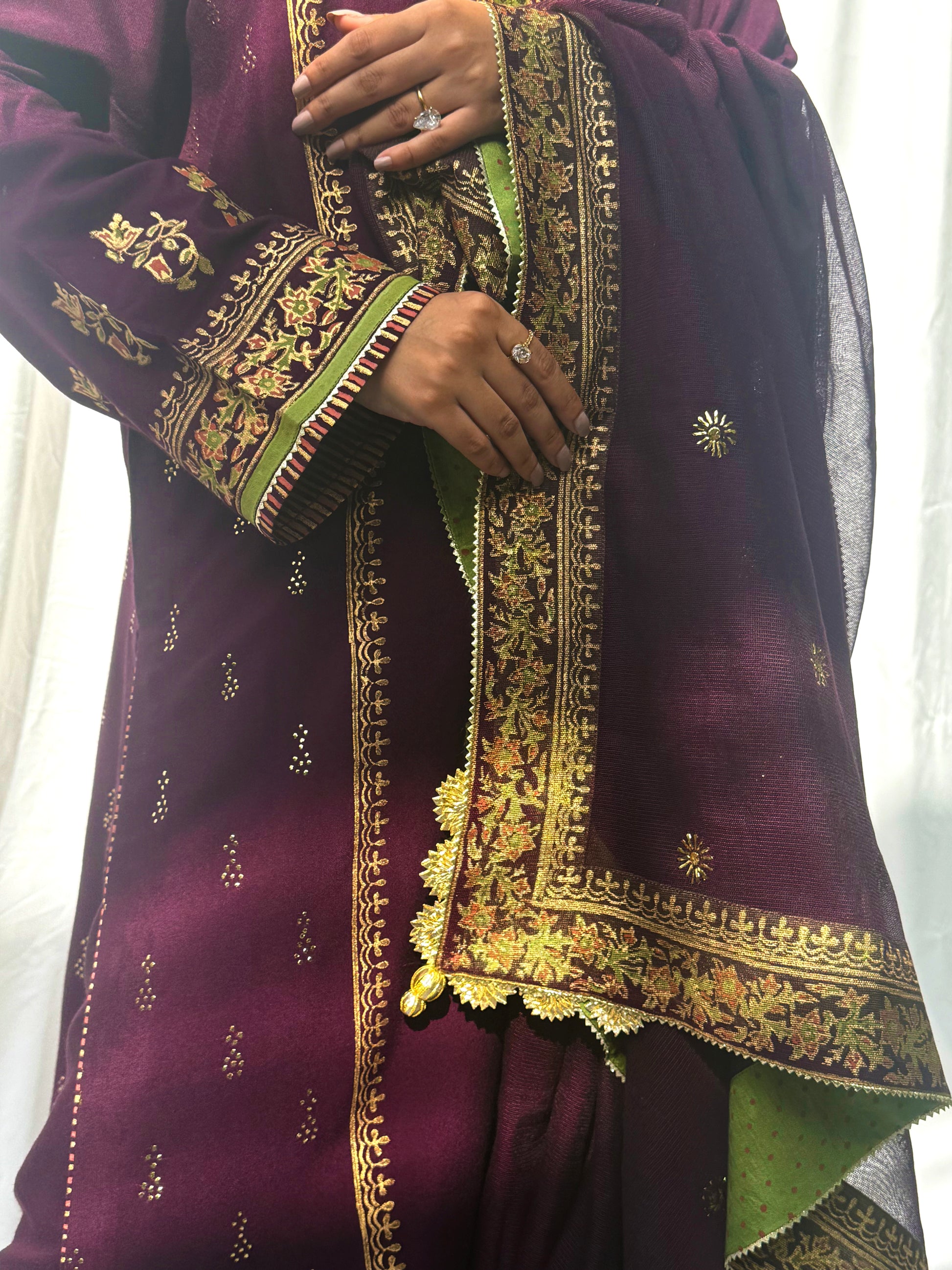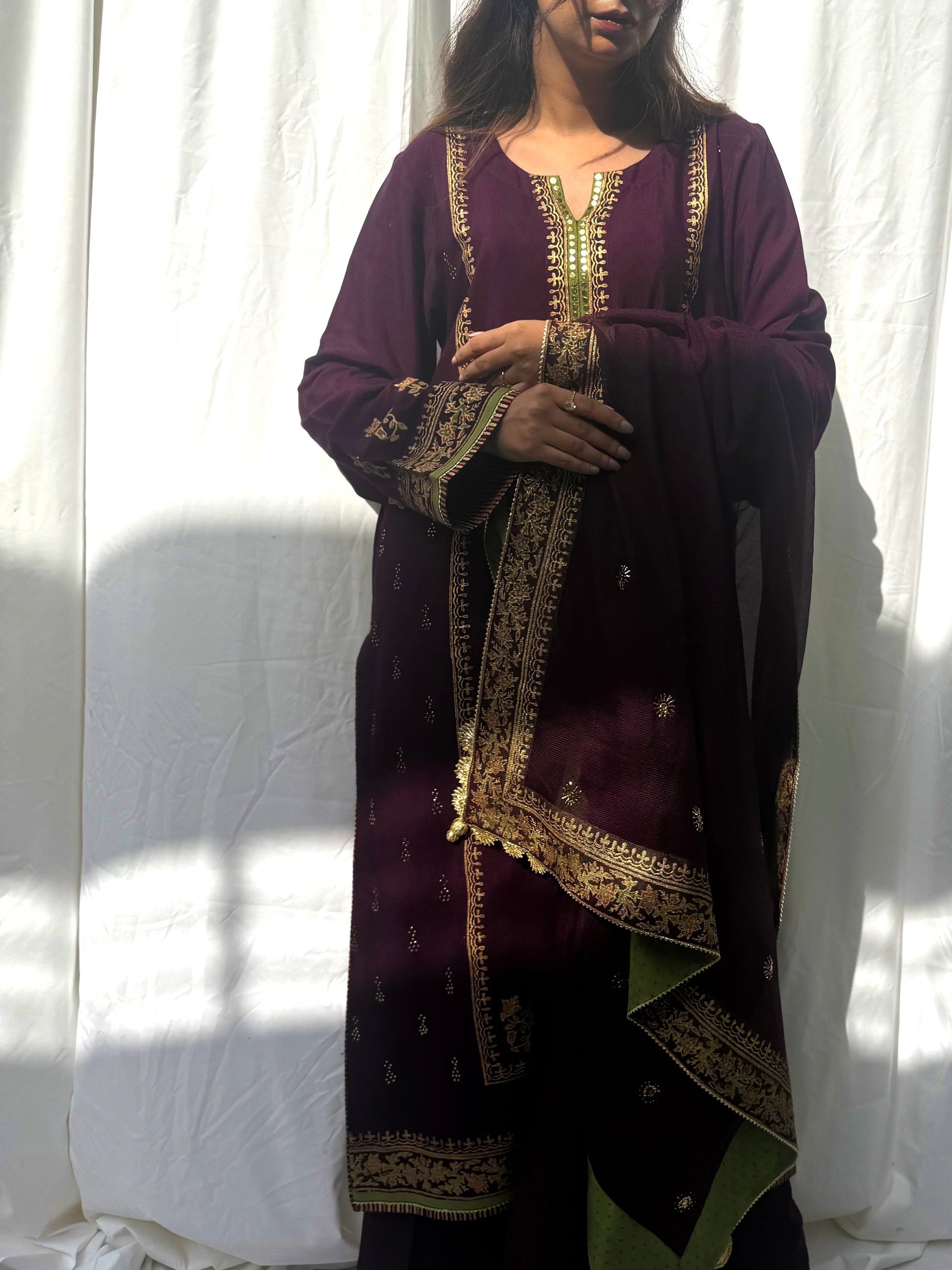 Elevate your style with the ZEMIRA khaddi silk shirt, designed with a refined block print and exquisite kamdani detailing. This sophisticated ensemble includes a block-printed dupatta and matching pants, blending traditional craftsmanship with luxurious fabric. The graceful silhouette and coordinated pieces create a timeless look that exudes subtle artistry and exceptional quality, perfect for those who appreciate elegance in every detail.