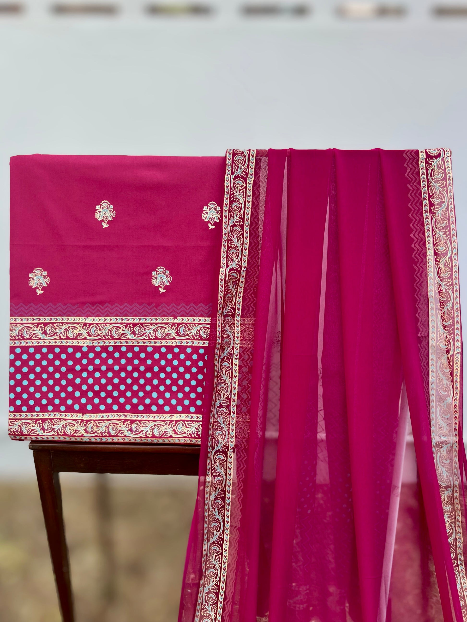 Elevate your wardrobe with this refined three-piece unstitched ensemble, crafted from premium printed cotton. The collection features beautifully designed fabric paired with a delicate chiffon dupatta, offering endless styling possibilities. Perfect for creating bespoke garments tailored to your preferences, this set combines traditional elegance with contemporary design. Ideal for casual wear or special occasions, the high-quality cotton ensures comfort throughout the day while the intricate prints add a touch of sophistication to your personal style.