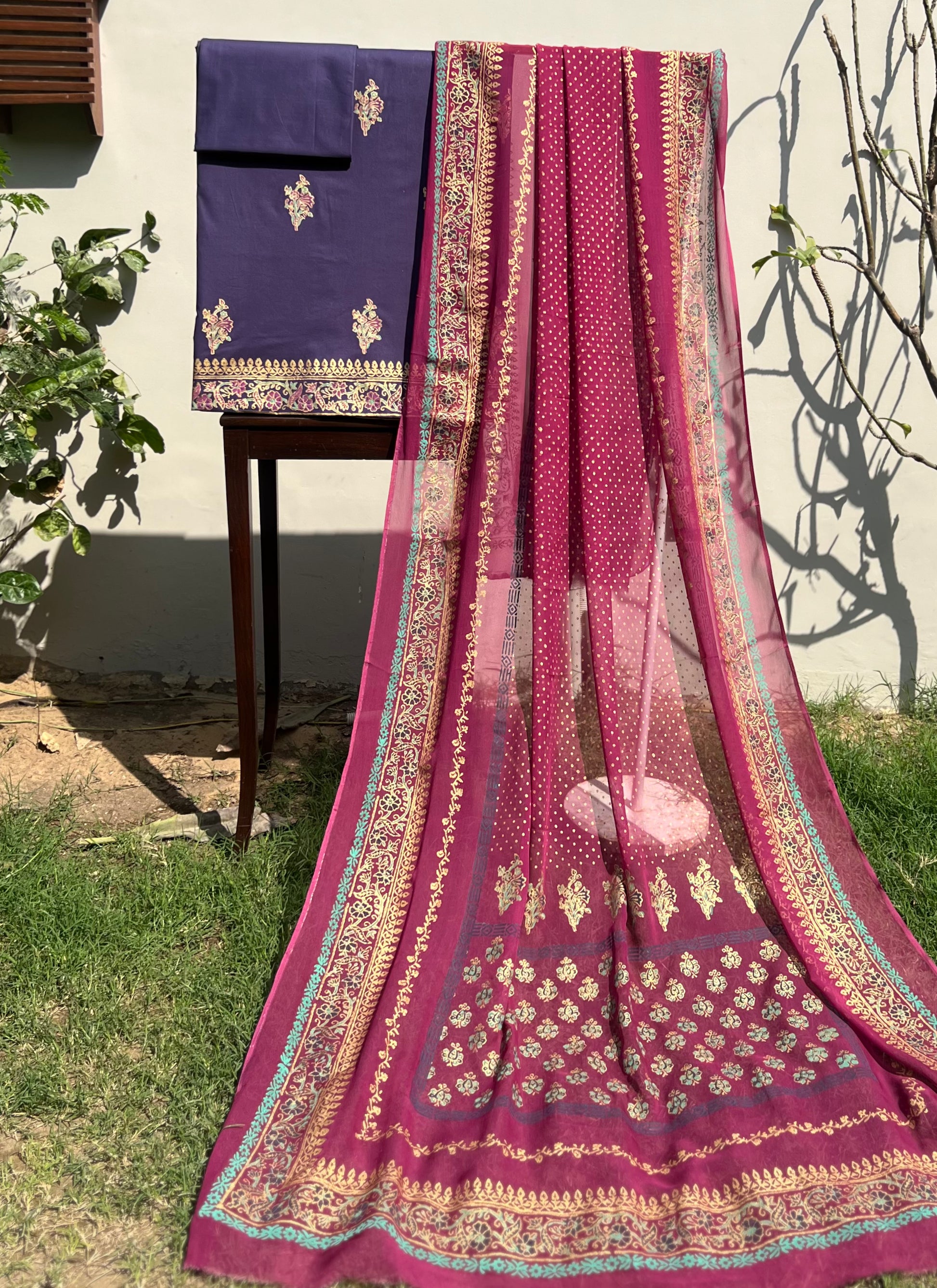 Elevate your wardrobe with this refined three-piece unstitched ensemble, crafted from premium printed cotton. The collection features beautifully designed fabric paired with a delicate chiffon dupatta, offering endless styling possibilities. Perfect for creating bespoke garments tailored to your preferences, this set combines traditional elegance with contemporary design. Ideal for casual wear or special occasions, the high-quality cotton ensures comfort throughout the day while the intricate prints add a touch of sophistication to your personal style.
